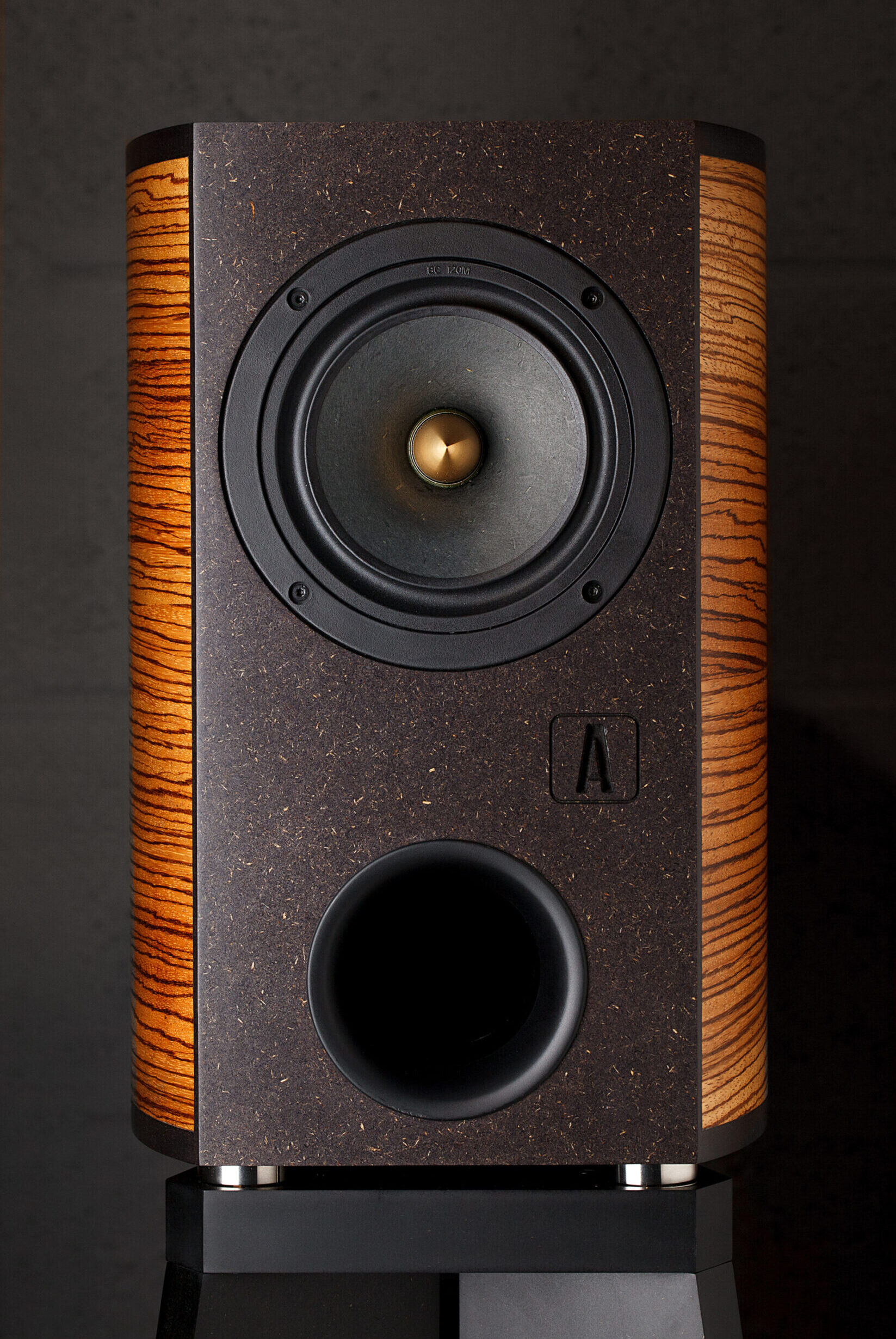 Divine proportioned, elliptical cabinet milled from solid, long fibre, wood and resin stock for rigidity and resonance control. Vintage Bullock alignment with advanced stabilisation (patent pending) for tuneful bass and an impulse response which belies industry expectation. Over proportioned, forward firing port to translate impulse response into room pressure. Integrated stand featuring rigid primary load path of driver to floor.